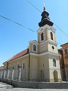 The St. George Serbian Church (Romanian: Biserica sârbească „Sf. Gheorghe”; Serbian: Српска црква Св. Ђорђе, romanized: Srpska crkva Sv. Đorđe) is a Serbian Orthodox church in the Fabric district of Timișoara. Located in Trajan Square, it is one of the three Serbian Orthodox churches in the city, along with the Serbian Orthodox Cathedral in Cetate's Union Square and the St. Nicholas Church in Mehala's Avram Iancu Square.