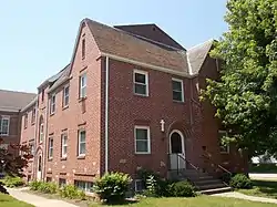 The Rev. Joseph Brinkman became the pastor in 1889. He had been instrumental in the construction of the Basilica of St. Francis Xavier in Dyersville, Iowa.[3] Brinkman designed a new school (1894), rectory (1899), and the present church (1904). Parishioners had determined that the school building was too small. The 50-by-70-foot (15 by 21 m) Colonial Revival structure was completed for $8,000, and the old school building was converted into a convent.[3] Soon after the roof of the frame rectory started to deteriorate and it had other problems. A building committee of parishioners decided not to waste money on the old house. The new 42-by-34-foot (13 by 10 m) residence was completed for $3,500.[3] It is a two-story, brick Colonial Revival structure with Italianate influences. The old rectory was moved to a different lot in town.