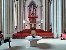 The organ of St. Marien was built in 1967 by Dutch organ builders Flentrop and underwent extensive renovation in 1998. The slider chest instrument has 47 registers across four manual stops and pedals. The stop and key actions are operated manually. The Brustwerk is fitted with a threshold mechanism.[3]