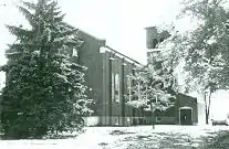 By the 1910s, the old frame building had proved insufficient for the church's needs. Consequently, the parish arranged for the erection of its third and final church, a Flemish bond brick structure constructed in a transitional Italianate style of architecture.[2][3]:3 This building was based on a foundation of concrete and a gabled tile roof; the rectangular church featured a square bell tower on its southwestern corner. The interior featured frescoes and a prominent statue of Saint Patrick (the patron saint of Ireland[5]); it was lit by multiple windows of stained glass.[2] As a large church in a rural setting served by priests of the Society of the Precious Blood, St. Patrick's was closely connected to many other churches in western Ohio: wide areas of western Ohio that were primarily settled by Catholics feature large churches at sparsely-populated crossroads. While most of these churches are constructed in the Gothic Revival style of architecture, some of the newer churches of the region — including St. Patrick's — appear in a variety of styles; St. Patrick's was one of the few that lacked the high steeples of the Gothic Revival structures. The leading role of these churches in western Shelby County and the lands somewhat farther west has caused the region to be nicknamed the "Land of the Cross-Tipped Churches."[3]:3,6