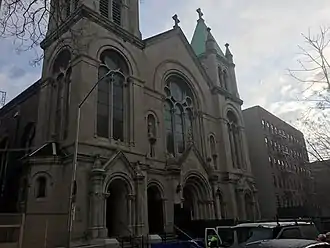 During Fr. Maguire's tenure the church was substantially enlarged and rededicated by Archbishop John McCloskey on July 9, 1871.[2] Dr. McQuirk had the old school demolished in 1905 and a new one built on the site. While a new church was being built, services were held in the school auditorium. A new rectory was also built. The demographics of the area, which had been predominantly Irish, gradually changed to reflect more Spanish speaking Catholics. Msgr. Drew initiated a Spanish program.