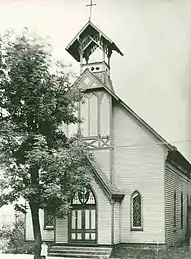 The first church building was constructed and consecrated on October 22, 1846 by Bishop John Johns of the Diocese of Virginia.[2] Confederate troops stole the bell from the steeple during the American Civil War in order to make cannon balls.[4] The first church building also housed the first pipe organ west of the Blue Ridge Mountains, which was transported over the mountains by ox cart.[5] One of the most notable figures to frequently visit the church during his long stay in Abingdon was Elliott Bulloch Roosevelt, father of former First Lady of the United States Eleanor Roosevelt and younger brother of Theodore Roosevelt, the 26th President of the United States.[2] Elliott Roosevelt gifted a large lectern Bible to the parish in memory of his wife Anna Hall Roosevelt.[2]