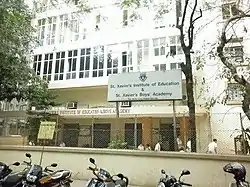 St. Xavier's Boys' Academy, Mumbai (abbreviated as SXBA) is a private primary and secondary school for boys located in Marine Lines, Mumbai, Maharashtra, India. The school was established by the Jesuits in June 1957 and caters for students enrolled from Jr Kg through 10.[1] The school is accredited by the Maharashtra State Board of Secondary Education to prepare students for their Secondary School Certificate (SSC) Examination.[2] SXBA accepts boys of all communities, castes, or creeds.[1]