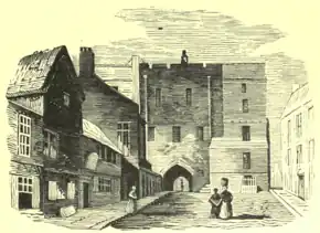 The New Gate, Newcastle in 1813, ten years before its demolition. St Andrew's Church stood close by to the west.