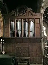 The church contains a pipe organ of uncertain date made by Kirkland of London at their Wakefield branch which opened in 1893.[22][27] Its most recent restorations were in 1935 and 1955.[22] It has three manuals and a pedalboard, and is described on the National Pipe Organ Register as being of an "unusual" type.[28]