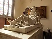 The Brocas chapel is an aisle added to the church of St James by the architect John Soane around 1800.[1] This chapel was built to house the tomb of Bernard Brocas of Beaurepaire, which had previously been outside, exposed to the weather. The white marble tomb was the work of John Bacon the Elder.[8] Brocas, who died 8 November 1777, was Lord of Beaurepaire, Hampshire and a magistrate and colonel of the militia. He was a descendant of Bernard Brocas, who was executed in 1400, the son of the MP Bernard Brocas, died 1395, an Anglo-Gascon family of the 13th and 14th centuries.