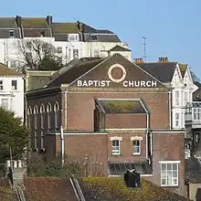 - ↑ Historic England. "Baptist Church, Wellington Square (north west side), Hastings, East Sussex (Grade II) (1286663)". National Heritage List for England. Retrieved 29 March 2013.