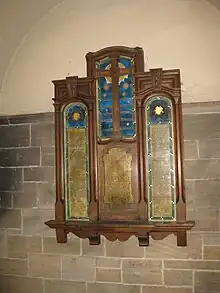 - Choir stalls designed and installed by Leslie Moore (intact)