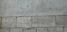 On the North wall of the West tower can be found some remarkable 14th-century graffiti which includes an inscription recording survival of citizens of Ashwell during the Great Plague known as the Black Death and an early inscribed drawing of the Old St Paul's Cathedral in London.[4] There is no clue as to who wrote the graffiti or to its exact date. On the wall of the church tower graffiti was inscribed, which reads: