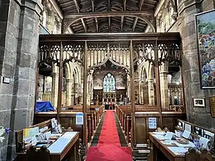 St Mary's Church, Market Drayton, stands on the top of a prominent outcrop of red sandstone rock above the River Tern. The church is recorded in the National Heritage List for England as a designated Grade II* listed building.[1]