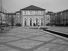 St Michael's Chapel is the former Anglican chapel to Lancaster Moor Hospital, to the east of Lancaster, Lancashire, England. It was built in 1866 to a design by the local architect E. G. Paley.[1] Its architectural style is Neo-Norman.[2] The chapel is constructed in sandstone with ashlar dressings and a slate roof. Its plan is cruciform, consisting of a nave with a west porch, north and south transepts, and a chancel with an apsidal east end. The windows are round-headed with voussoirs of alternating red and yellow sandstone. Both transepts contain a rose window above two single-light windows.[3] Since becoming redundant the chapel has been converted into flats.[2] The former chapel is recorded in the National Heritage List for England as a designated Grade II listed building.[3]