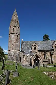 St Michael the Archangel is a Grade I listed church in Llanyblodwel, in Shropshire, England. It has a spire of unusual shape and was designed in 1847–1856 by the vicar, John Parker.