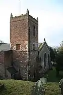 The nave dates to at least the 13th century and the windows to the 14th-15th centuries. It was remodelled in the early 19th, which included the addition of the top part of the tower, and again in 1889 by C. Hodgson Fowler.[1] A Romanesque tympanum has been incorporated into the porch and remains in situ above the door.[3]