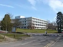 The hospital has its origins in an Emergency Medical Service hospital established in the grounds of Botleys Mansion in September 1939.[1] After the war the hospital was managed by Surrey County Council as an acute general hospital until it joined the National Health Service in 1948.[1] The hospital was redeveloped in the late 1960s with the first phase, which included five new operating theatres, being opened by the Duchess of Kent in September 1967 and the second phase, which included a maternity block, being opened in 1970.[1] A new out-patients department was opened by Geoffrey Pattie MP in 1981 and the Abraham Cowley Unit for mental health opened in 1988.[1]
