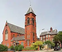 It is a Gothic revival church designed by Pugin & Pugin. It was built in 1888–89 using red brick from Ruabon, Wales.[1]
