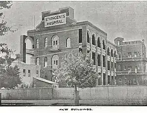 - ↑ "St Vincent's Hospital. New Druids' Wing". The Argus. 12 May 1913. Retrieved 20 February 2015.