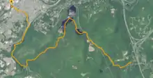 Stafford Meadow Brook begins near Birchwood Estates in Roaring Brook Township. It flows west-southwest for several tenths of a mile before turning northwest for a few miles. It flows in a broad valley alongside Pennsylvania Route 307, crossing it three times and receiving five unnamed tributaries: three from the left and two from the right. The stream eventually passes through the Williams Bridge Reservoir as its valley becomes narrower. On the northern side of the reservoir, it flows north-northwest for a few tenths of a mile before entering Lake Scranton and briefly passes through Scranton before reentering Roaring Brook Township. From the southern end of the lake, the stream flows southwest for a few miles, receiving one unnamed tributary from the left and another from the right. It then reenters Scranton and continues flowing southwest, receiving one more unnamed tributary from the left. It then briefly turns south before passing through the District Number Fifty-Nine Reservoir and turning northwest. After several tenths of a mile, it enters Moosic and then turns northeast for more than a mile, reentering Scranton and flowing alongside Interstate 81. The stream eventually receives Mountain Lake Run, its only named tributary, and turns northwest for several tenths of a mile, crossing US Route 11 and reaching its confluence with the Lackawanna River.[2]