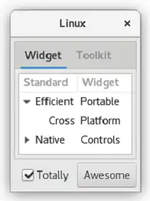 SWT widgets have the same look and feel as native widgets because they often are the same native widgets. This is in contrast to the Swing toolkit where all widgets are emulations of native widgets. In some cases the difference is distinguishable. For example, the macOS tree widget features a subtle animation when a tree is expanded and default buttons have an animated pulsing glow to focus the user's attention on them. The default Swing version of these widgets does not animate.