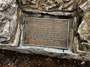 Star Gazers' Stone located on Star Gazers' Farm near Embreeville, Pennsylvania, USA, marks the site of a temporary observatory established in January 1764 by Charles Mason and Jeremiah Dixon which they used in their survey of the Mason-Dixon line. The stone was placed by Mason and Dixon about 700 feet (213 m) north of the Harlan House, which was used as a base of operations by Mason and Dixon through the four-and-a-half-year-long survey. Selected to be about 31 miles (50 km) west of the then southernmost point in Philadelphia, the observatory was used to determine the precise latitude of its location. The latitude of the Maryland-Pennsylvania border was then set to be 15 miles (24.1 km) south of the point in Philadelphia. The farm, including the house and stone, were listed on the National Register of Historic Places on May 9, 1985. In 2013 construction was completed on a parking area to allow public access to Star Gazers Stone.[2]