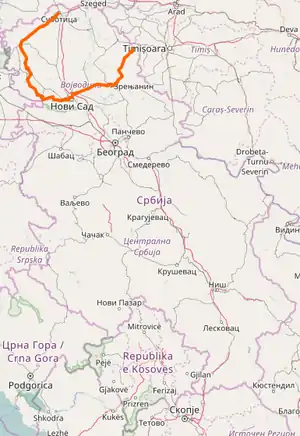 01218 2.410 km (1.498 mi)/2.108 km (1.310 mi) 224.435 km (139.457 mi) Zrenjanin (Ečka) – Zrenjanin (Sečanj)