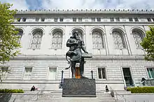 Ashurbanipal, also known as the Ashurbanipal Monument or the Statue of Ashurbanipal,[2] is a bronze sculpture by Fred Parhad, an artist of Assyrian descent. It is located in the Civic Center of San Francisco, California, in the United States. The 15-foot (4.6 m) statue depicting the Assyrian king of the same name was commissioned by the Assyrian Foundation for the Arts and presented to the City of San Francisco in 1988 as a gift from the Assyrian people. The sculpture reportedly cost $100,000 and was the first "sizable" bronze statue of Ashurbanipal.[3] It is administered by the City and County of San Francisco and the San Francisco Arts Commission.