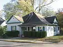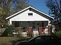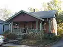 The neighborhood that resulted from Steele's subdivision consists almost entirely of single-story houses, most of which were built in a "Free Classic" style that resembles the Queen Anne style of architecture. Some of the houses in the neighborhood are older than the neighborhood itself, such as three different double-pen houses that were constructed during the nineteenth century.[2]: 15 Two of the houses are duplexes;[4] erected largely for speculative purposes, they were constructed in such a way that they resemble single-family houses. The form of architecture employed for these residences is known as the "T-plan" because of their floor plan that is shaped like that letter; they feature porches on both sides that are separated by a large gable with a pediment.[2]: 15