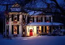 The Cray House, located on Cockey Lane, is the most complete example of post-and-plank construction known to exist. John Denny purchased the lot from J. Stevens in 1809.[3] Denny, a ship carpenter, used a construction method in which walls are formed by tenoning horizontal planks into slots cut into vertical corner posts. After a series of owners, it was sold at auction in 1914 to Nora Cray, a widow who lived there with her three children. Nora Cray's heirs deeded the property to The Kent Island Heritage Society in 1976, and the house was restored in 2004.[4] It predates the town of Stevensville, and is listed individually on the National Register of Historic Places.