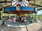 In 2011, the Friends of Stewart Park began wide-ranging rehabilitation and restoration for Stewart Park.[10] This effort began with the renovation of the Mayor Stewart Memorial Flagpole garden and clean up of the Picnic Pavilion and Wharton Building[17] Since that time, Friends of Stewart Park in partnership with the City of Ithaca, have led a major revitalization effort including reconstruction of the small Tea Pavilion, restoration of the Picnic Pavilion, carousel, Fuertes swan pond overlook, roof replacements on the Wharton Building and Cascadilla Boathouse, and many smaller improvements throughout the park. Aside from restoring the past, Friends of Stewart Park is enhancing the park for the future. In 2020 the organization completed a new accessible playground. In 2021, a year-round restroom was completed. [18] Further planned improvements include a new splash pad, added restrooms, and the creation of the Wharton Studio Museum and Park Visitor Center with a cafe.