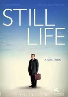 Still Life is a 2013 drama film written and directed by Uberto Pasolini.[1][2] The film was presented at the 70th Venice Film Festival, where it won the award for Best Director in the category "Orizzonti".[3] At the Reykjavik International Film Festival, Still Life received the top award (Golden Puffin) as well as the FIPRESCI Award.[4] It also received the Black Pearl award (the highest award) at the Abu Dhabi Film Festival for "its humanity, empathy and grace in treating grief, solitude and death"; for his performance, Eddie Marsan won the Best British Actor award at the 2014 Edinburgh International Film Festival.[5]