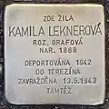 Kamila Leknerová née Grafová was born on 5 April 1868. She was deported to Theresienstadt concentration camp on 20 June 1942 by transport AAe. Her transport number was 349 of 1,005. There she was murdered by the Nazi regime on 13 May 1943.[16]