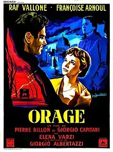 Storm (French: Orage, Italian: Delirio) is a 1954 French-Italian melodrama film directed by Pierre Billon and Giorgio Capitani and starring Raf Vallone, Françoise Arnoul and Elena Varzi.[1] The film's sets were designed by the art director Mario Chiari. It is based on the play Le Venin by Henri Bernstein, which had previously been made into the 1938 film Orage.