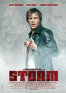 Storm is a 2005 Swedish fantasy-thriller film directed by Måns Mårlind and Björn Stein. The film stars Eric Ericson, Eva Röse and Jonas Karlsson.[2][3][4] The official opening of Storm was on 20 January 2006, but the actual opening was at a preview of the film on 18 November 2005 during the Stockholm Film Festival, where it also was awarded. Before 2006, Storm had already been sold to 18 other countries.