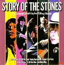 Story of The Stones is a compilation album of the Rolling Stones, released in the UK in 1982. Released by the Irish arm of the mail order company K-tel,[2] the double vinyl record or cassette tape album reached number 24 on the UK Albums Chart[3] and being certified gold by the British Phonographic Industry for 100,000 units sold.[4]