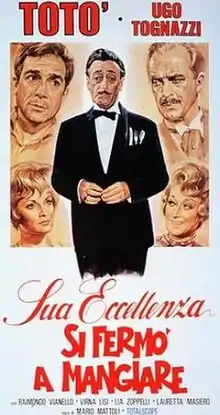 Sua Eccellenza si fermò a mangiare is a 1961 Italian comedy film directed by Mario Mattoli and starring Ugo Tognazzi.[1]