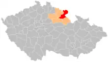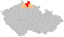 Czech districts with an ethnic German population in 1934 of 20% or more (pink), 50% or more (red), and 80% or more (dark red)[10][11] in 1935