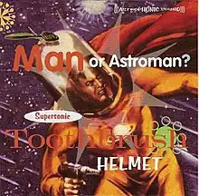 Supersonic Toothbrush Helmet is a Man or Astro-man? 7-inch EP released on Lance Rock Records in 1993. The first pressing was available on clear red vinyl and on black vinyl. The left inside of the record jacket features a black-and-white photo of an Astro Burger restaurant. Later pressings were only pressed on black vinyl and the inside of the picture sleeve was left blank.