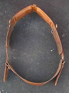 A surcingle is a strap made of leather or leather-like synthetic materials such as nylon or neoprene, sometimes with elastic, that fastens around the horse's girth.