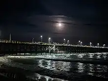 Until late 2018, road access to Surf City was mainly via the Topsail Island Swing Bridge, a failing steel truss swing-span bridge, built in 1954, which crossed the Intracoastal Waterway.[8] Planning for a replacement bridge began in 2010,[9] with construction beginning in September 2016. It opened in December 2018, a year ahead of schedule.[10] Costing US$54 million, the 3,800 feet (1,200 m) fixed-span high rise bridge, with a vertical clearance of 65 feet (20 m), allows the passage of vessels at any time and eases traffic flow to and from the community. The 50 feet (15 m) wide bridge provides two lanes for traffic, shoulder bicycle lanes, and a multi-use path. The unusually wide design is intended to permit three lanes for hurricane evacuations. The contractor was scheduled to remove the old bridge by March 31, 2019. In a letter to residents in January, the Town's mayor, Doug Medlin said, "NCDOT and Balfour Beatty understood the sentimental relationship that the Town of Surf City had for our Swing Bridge. We were given the turn bridge control panel and key as well as the cornerstone from when the bridge was first constructed. These items will be displayed in the new Surf City Town Hall as a historical memorial."[11]