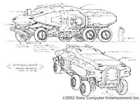 Drawings of the Moon Truck used in the game by Junya Ishigaki.