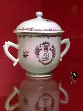 Granting permission for a charter was not entirely uncontroversial during that time when mercantilism, which advocated regulations so that the production of export goods was promoted and import reduced, was the dominant idea for trade. Opposition became even more apparent after the first journey made by the ship Friedericus Rex Sueciaes in 1735.[16] Demands were made in the Riksdag for sanctions and restrictions for the trade company, a number of pamphlets were written, arguing that Swedish steel and timber were wastefully being exchanged for such "worthless goods" as tea and porcelain.[lower-alpha 1] One of the most ardent critics against the charter was Johan Arckenholtz. He even spoke of the moral aspects, saying that the Swedish population "would be weaned from work and crafts and lose their health, strength and spirit by using products from a warmer climate".[18]