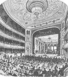 Svenska Teatern, or Nya Teatern, was founded by the actor Edvard Stjernström (1816-1877). The new theater was erected after drawings by Ernst Jacobsson (1839-1905). It was in its time Stockholm's largest theatre, with 1,150 seats in its two stalls and four galleries (as a comparison, today's national stage Dramaten has around 700 seats for its main stage). The theatre was also equipped with the first rotating stage in Sweden and had its own ballet-ensemble that was known worldwide for its quality.[2][3]