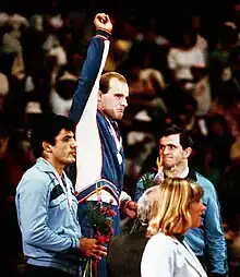 Freestyle wrestling 100 kg medal ceremony, Syrian silver medalist Joseph Atiyeh first from left.