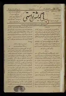 Têgeyştinî Rastî was founded by the British Army in January 1918 during the First World War in which Britain was fighting the Ottoman Empire. It was propaganda newspaper which highlighted and compared British rule to the Ottoman rule and that Kurdish language, culture and religion were better off under the British and to incite Kurds living under Ottoman Rule. The newspaper was published from 1918 to 1919 in which 66 issues were published. The name of the Editor was not published in the newspaper but it known to be Major Soane a British officer with knowledge in the Kurdish language and assisted by a Kurdish Poet Shukri Fadhli.[2][3]