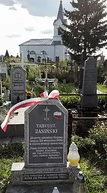 Tadeusz Jasiński (1926 21 September 1939, in Grodno) - was one of the young defenders of Grodno (see Battle of Grodno (1939)) in September 1939, after the Soviet invasion of Poland. He was one of the civilians captured and used by the Soviets as "human shields" attached to the armor and tanks.
