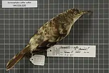 The Tahiti reed warbler (Acrocephalus caffer) is a songbird in the genus Acrocephalus. It used to be placed in the "Old World warbler" assemblage (Sylviidae), but is now in the newly recognized marsh warbler family Acrocephalidae. It is endemic to the island of Tahiti.