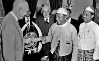 Burmese politicians dressed in taikpon.