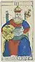 This deck pattern was derived from the Tarot of Marseilles but was made reversible for modern game playing.[5][6] It consists of 78 cards: a trump suit of 22 cards, numbered from 0 to 21, and four 14-card suits of swords (spade), batons (bastoni), cups (coppe), and coins (denari). Each suit has a king (re), queen (donna), knight (cavallo) and jack (unlabelled), pip cards numbered from 2 to 10, and an unnumbered card with an elaborate suit symbol which acts as the ace. Trumps and most pip cards have indices in modern Arabic numerals (for trumps, cups, and coins) or Roman numerals (for swords and batons). Unusually, in most games trump 20 outranks trump 21 (this may have been influenced by Bolognese games).