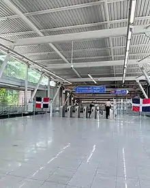 The Teleférico de Santo Domingo is an aerial cable car urban transit system in Greater Santo Domingo, operated as part of the Santo Domingo Metro.[2] It is the first urban-transport aerial cable car line in the Dominican Republic. It functions as a typical monocable gondola, and runs for 5 kilometers and a total of four stations, and is connected to the Santo Domingo metro system.