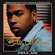 "Tell Me" is a song by American R&B singer Bobby Valentino. It was released in the summer of 2005, as the second single from his debut album. The remix of the song features Lil Wayne from Bobby Valentino. The song samples "Yearning for Peace" composed by Tan Dun on the Hero soundtrack, starring Jet Li. British R&B singer Stevie Hoang's song No Games sampled from the same source.