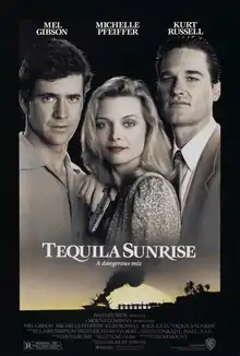 Tequila Sunrise is a 1988 American romantic crime film written and directed by Robert Towne, and starring Mel Gibson, Michelle Pfeiffer and Kurt Russell, with Raul Julia, J. T. Walsh, Arliss Howard and Gabriel Damon in supporting roles. The film's original music score was composed by Dave Grusin.
